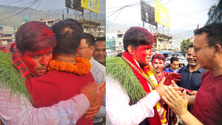 प्रशान्त उप्रेतीलाई भेटेर नेकपाका उम्मेदवार लवशेरले दिए शुभकामना