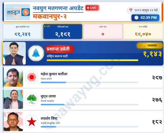 मकवानपुर–२ को सुरुवाती मतगणनामा रास्वपा अग्रस्थानमा